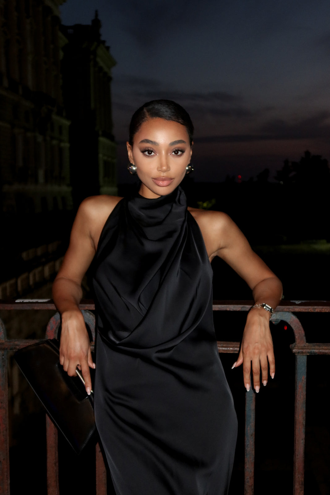 Elevate your evening elegance with this sophisticated halter sleeveless mermaid gown. The dramatic silhouette features a fitted bodice that flows into a graceful fishtail hem, creating an alluring and timeless look. The halter neckline provides refined support while showcasing the shoulders and décolletage. Crafted in luxurious black fabric, this dress commands attention at galas, formal events, and special occasions. The mermaid cut accentuates your curves while the sleek design ensures you'll turn heads. Perfect for those seeking a statement piece that balances classic glamour with contemporary sophistication.