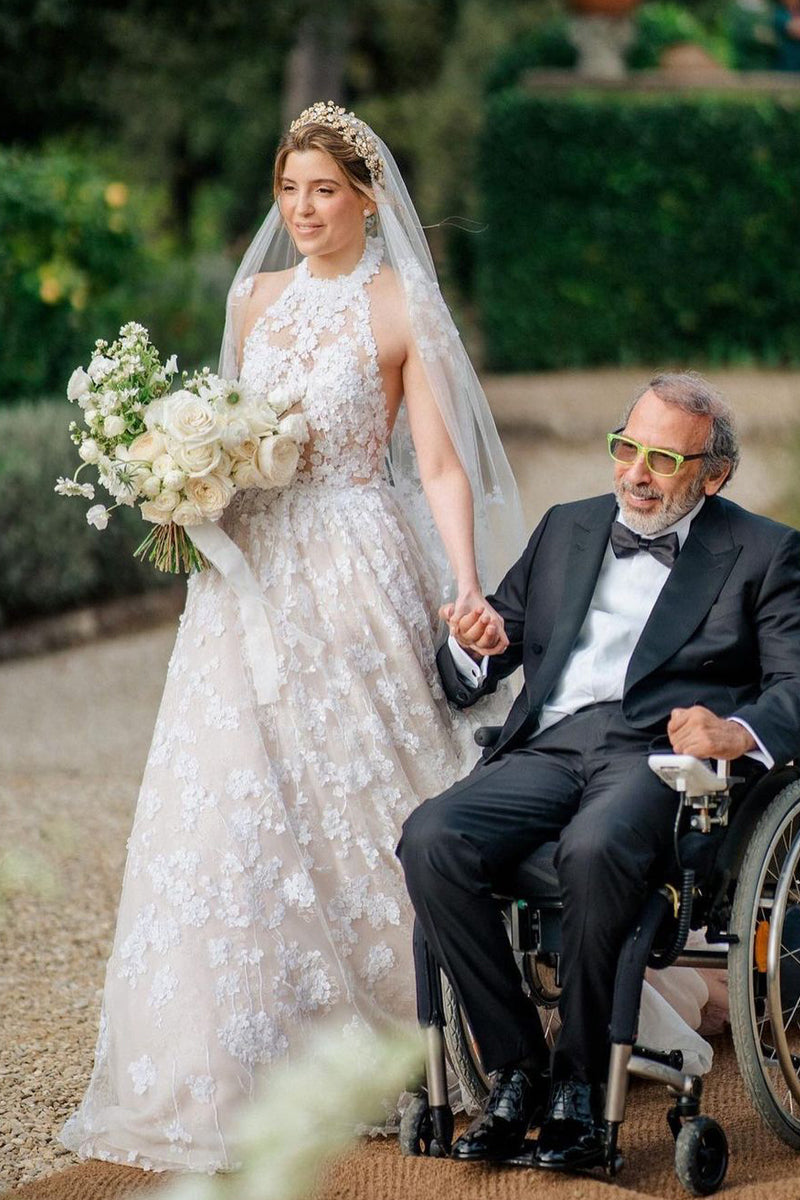 Romantic A-Line Halter Tulle Appliques Wedding Dresses