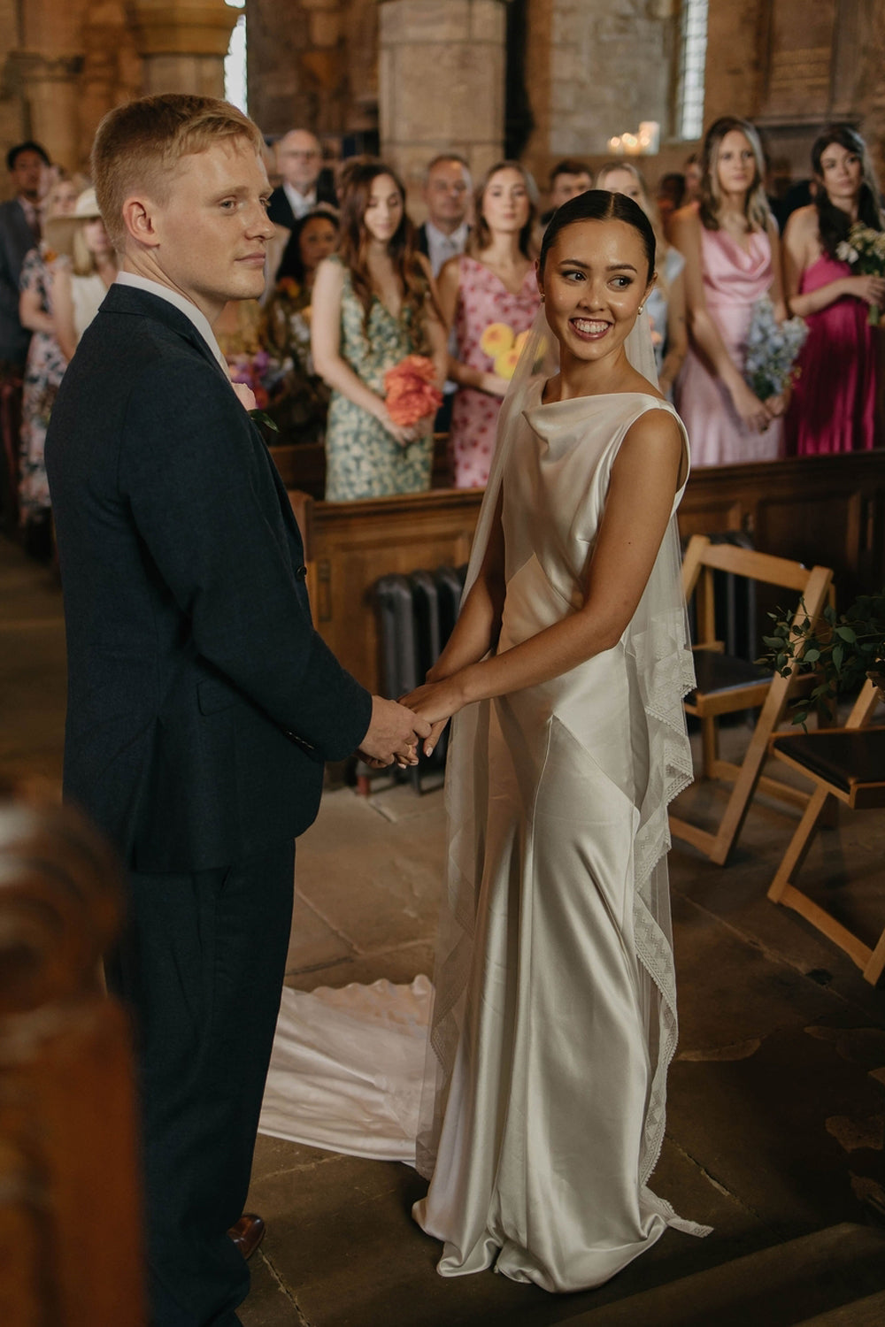 This elegant wedding dress features a timeless sheath silhouette crafted from luxurious silk satin, offering a smooth and graceful drape. The boat neck design enhances sophistication while providing subtle coverage. Its long length creates a stunning, elongated profile perfect for formal ceremonies. Combining refined materials with expert tailoring, this gown delivers a romantic yet modern look that ensures lasting comfort and style on your special day.