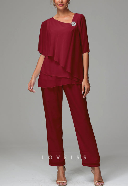 Assymmetrical Mother of Bride Short Sleeves Chiffon Jumpsuit