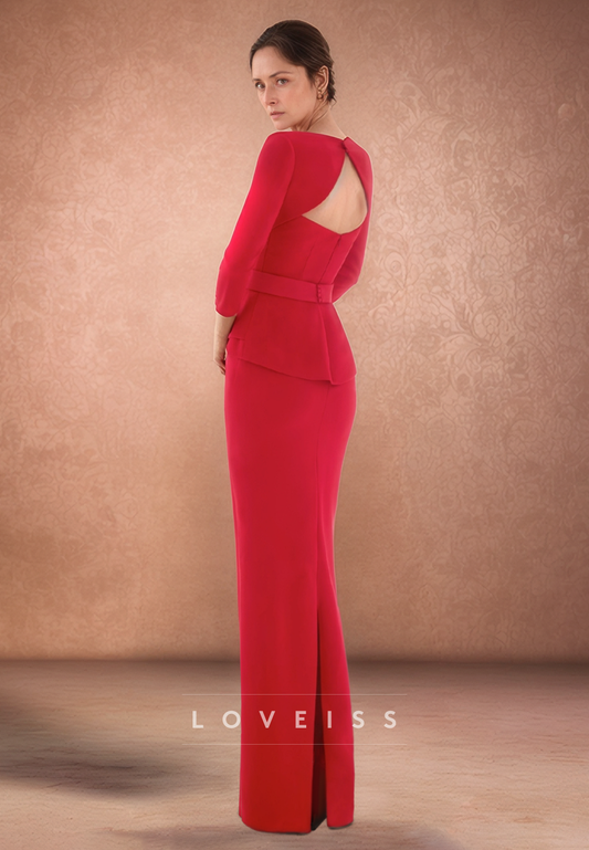 Bateau Long Sleeves Sleek Sheath Mother of Bride Dress