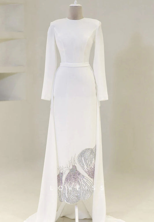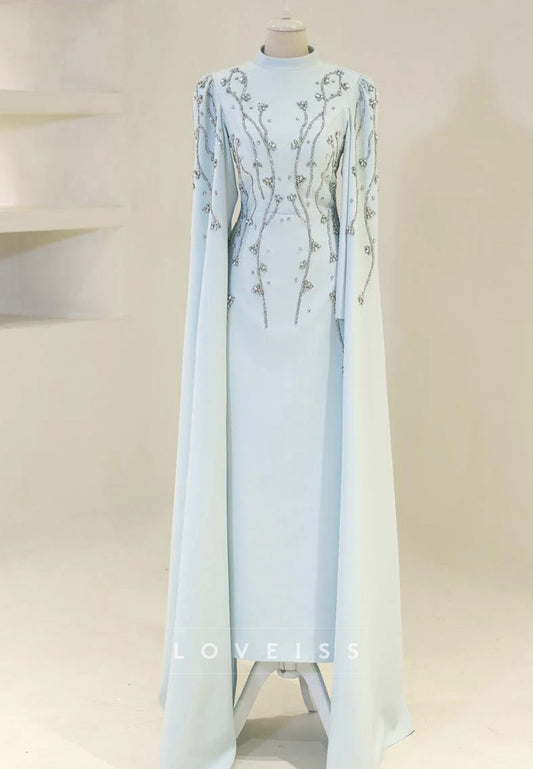 High Neck Long Sleeves Beaded Sheath Evening Dress