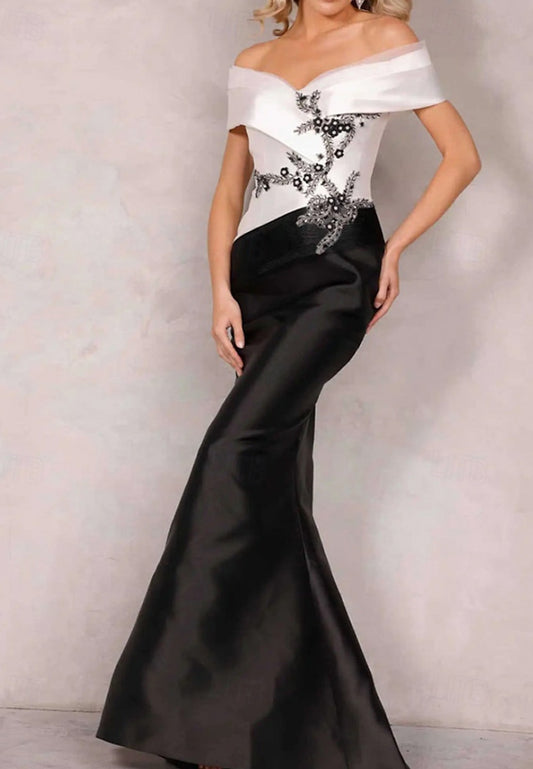 Off-Shoulder Strapless Beaded Embroidery Sheath Mother of Bride Dress