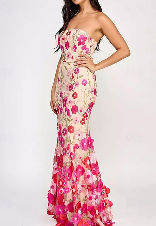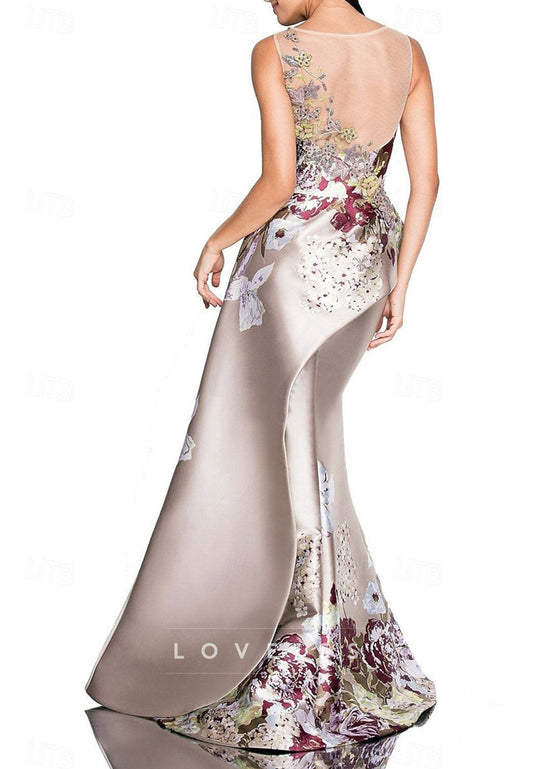 Scoop Sleeveles Floral Printed Mermaid Mother of Bride Dress