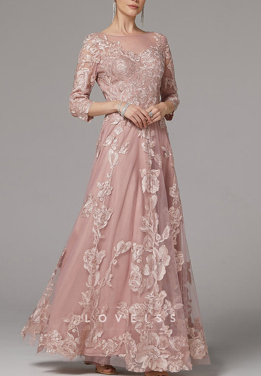 A-Line Evening Gown Elegant Dress Formal Wedding Floor Length 3_4 Length Sleeve