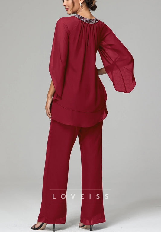 Scoop Long Sleeves Chiffon Juumpsuit Mother of Bride