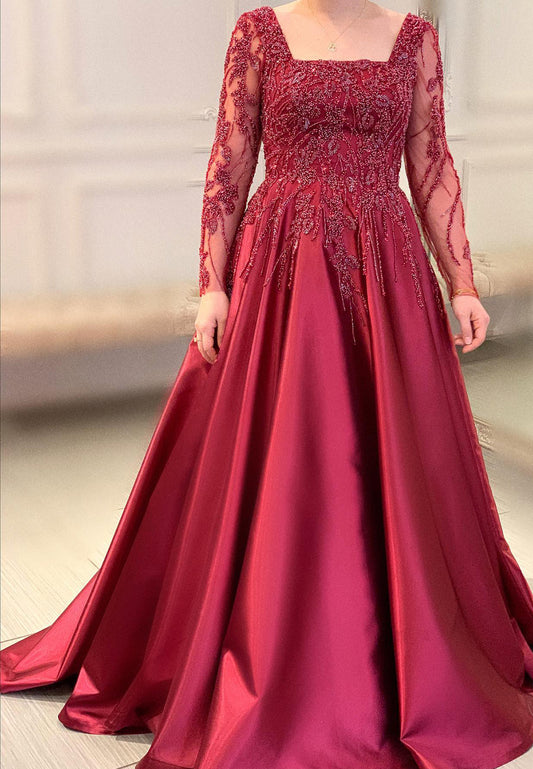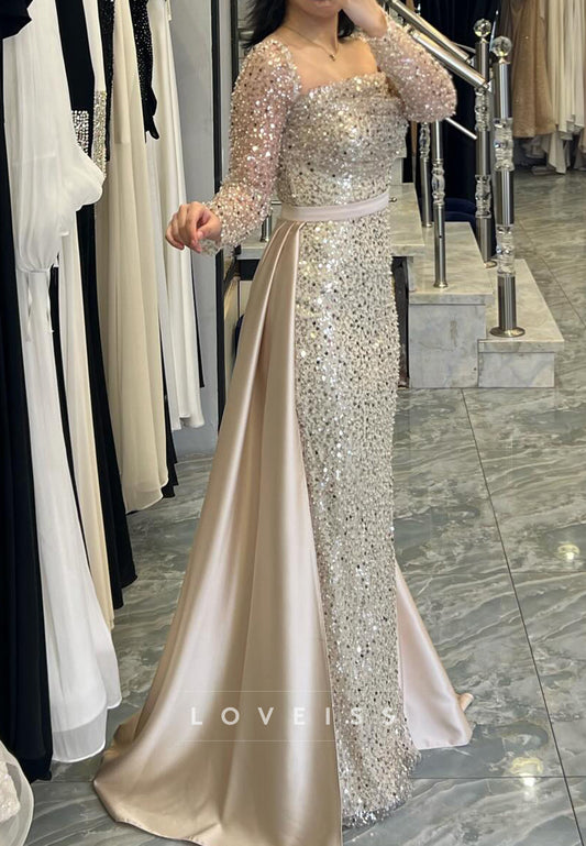 Square Long Sleeves Beaded Embroidery Mermaid Evening Dress