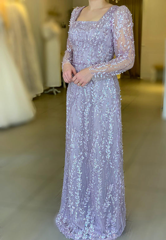 Square Long Sleeves Appliques Sequins A-Line Mother of Bride Dress