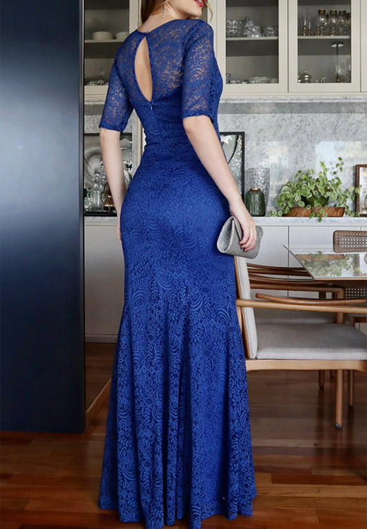 V-Neck Half Sleeves Appliques Mermaid Mother of Bride Dress