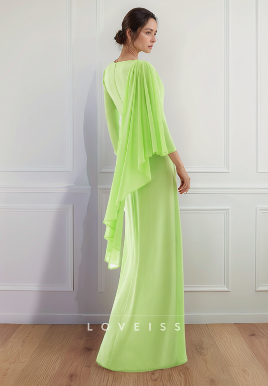 Scoop Long Sleevs Chiffon Sheath Mother of Bride Dress