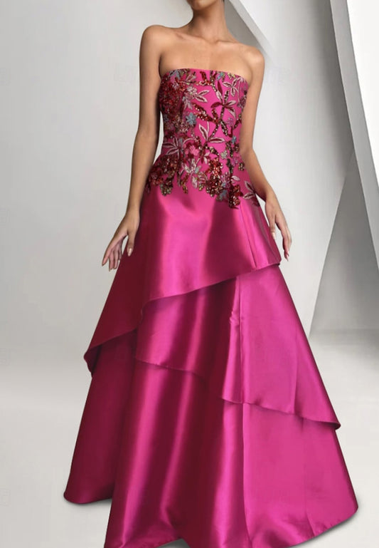 A-Line Evening Gown Elegant Dress Formal Floor Length Long Sleeve