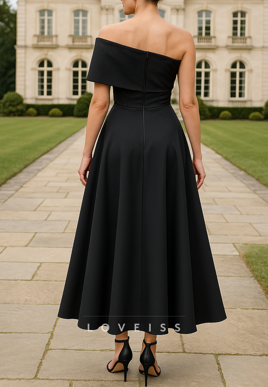 Off-Shoulder Sleeveless Sleek Sheath Midi Mother of Bride Dress