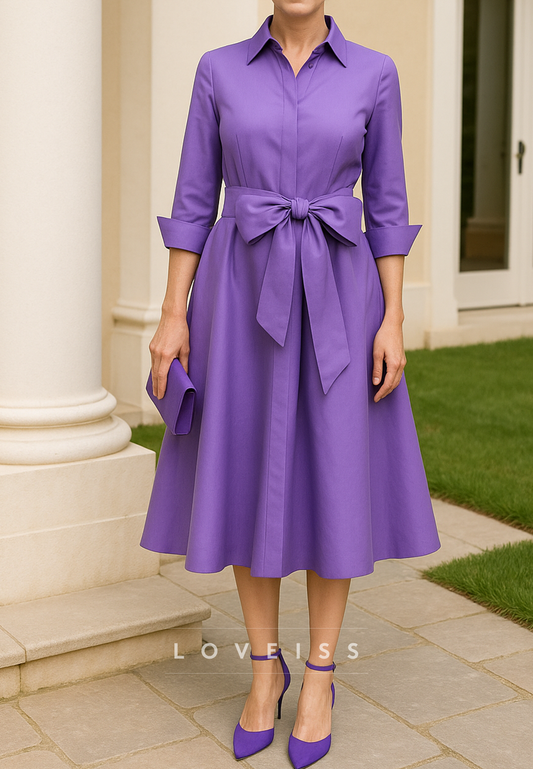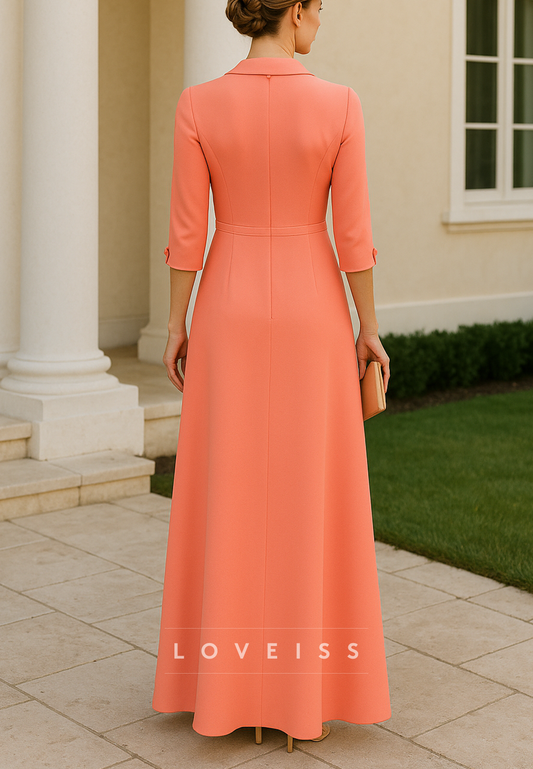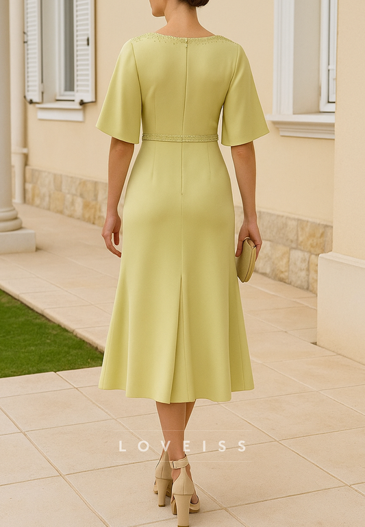 V-Neck Half Sleeves Belt A-Line Mother of Bride Dress