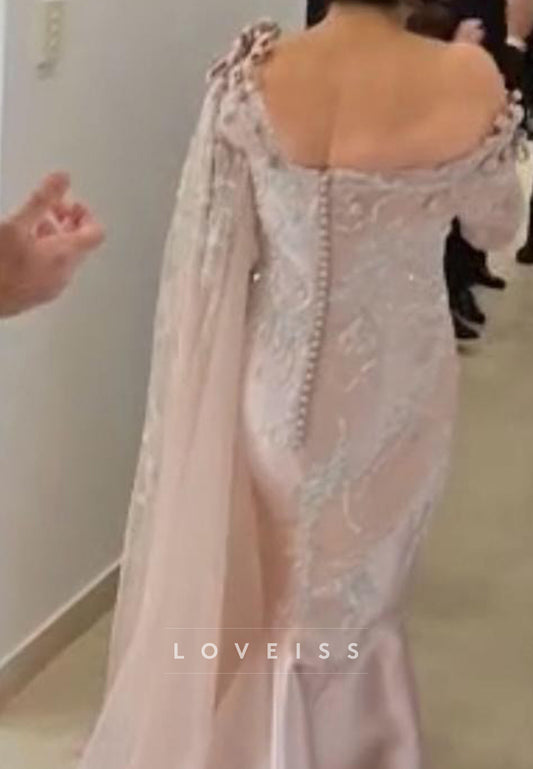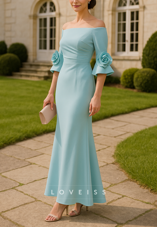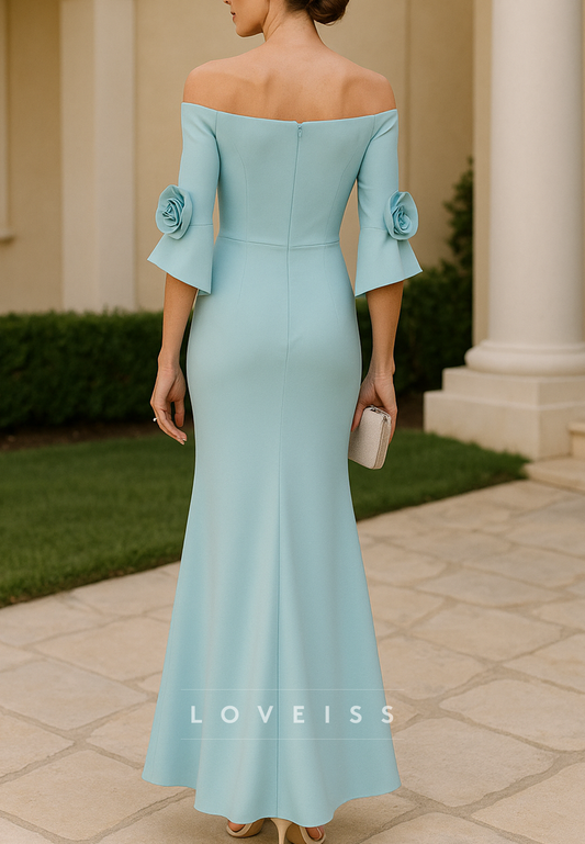 Off-Shoulder Half Sleeves 3D Floral Mermaid Mother of Bride Dress