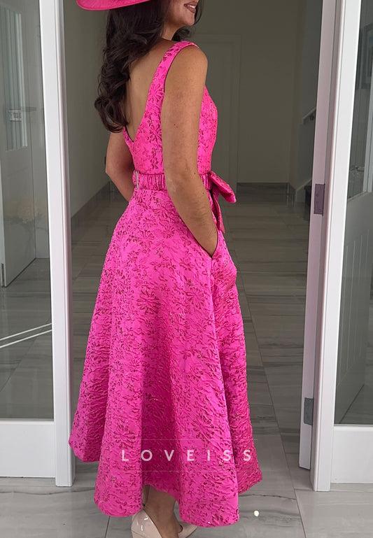Square Straps Floral Printed A-Line Mother of Bride Dress