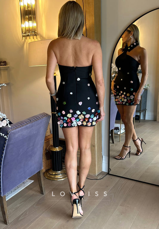 Halter Sleeveless Floral Appliques Sheath Party Homecoming Dress
