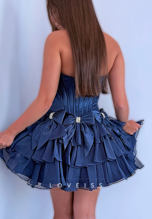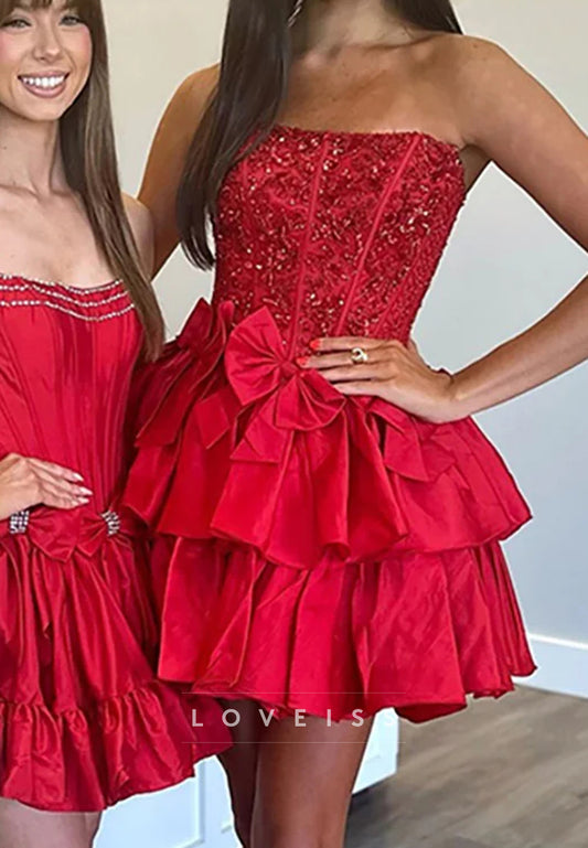 Straight Across Tiered Bowknot Appliques A-Line Party Homecoming Dress