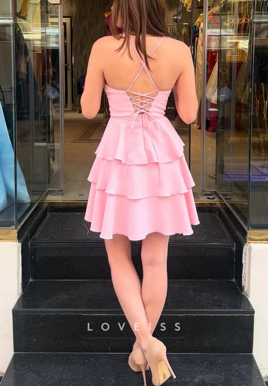 Scoop Spaghetti Straps Tiered A-Line Party Homecoming Dress
