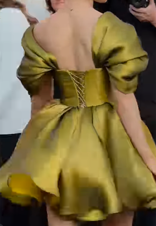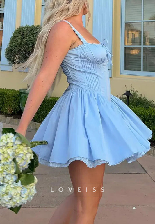 Semi-Sweetheart Straps Pleated A-Line Short Party Homecoming Dress