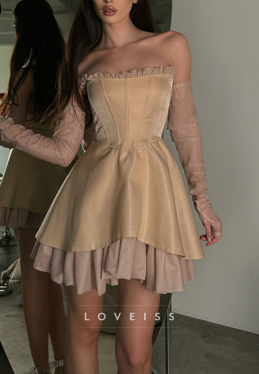 Sweetheart Long Sleeves Pleated A-Line Party Homecoming Dress