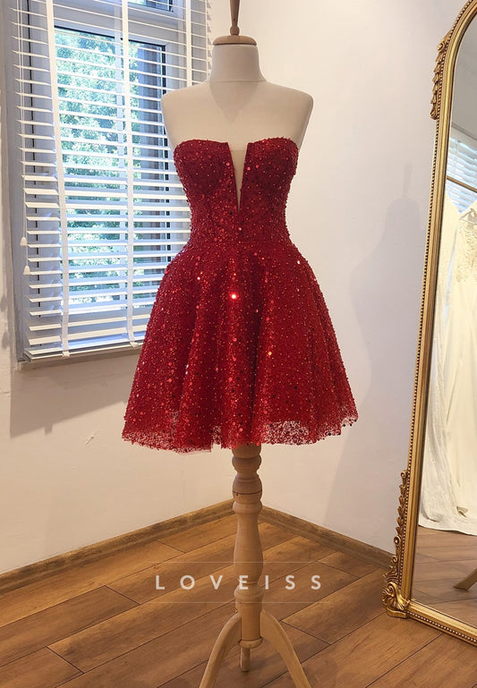 Sweetheart Sequins Beaded Sheath Sparkly Party Homecoming Dress