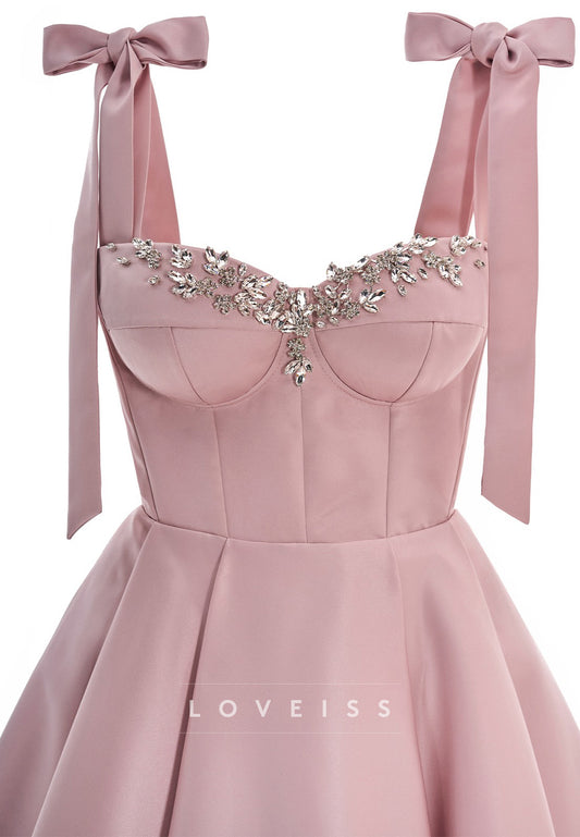 Square Straps Beaded Sleek A-Line Short Party Homecoming Dress