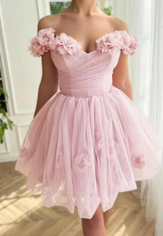 Off-Shoulder Appliques Pleated A-Line Short Party Homecoming Dress