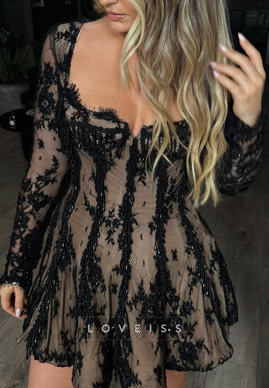 Sweetheart Long Sleeves Lace Appliques A-Line Party Dress