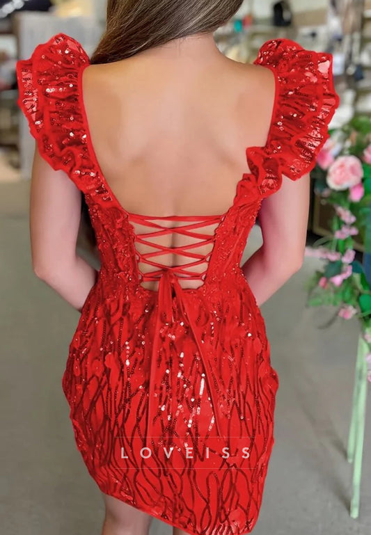 Sweetheart Sparkly Ruffled Sheath Short Homecoming Dress