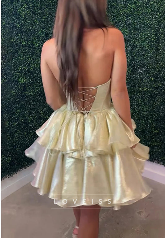 Sweetheart Tiered Strapless A-Line Party Homecoming Dress