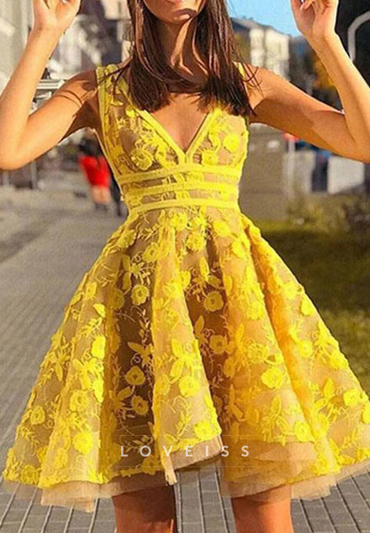 V-Neck Appliques Empire Waist A-Line Party Homecoming Dress