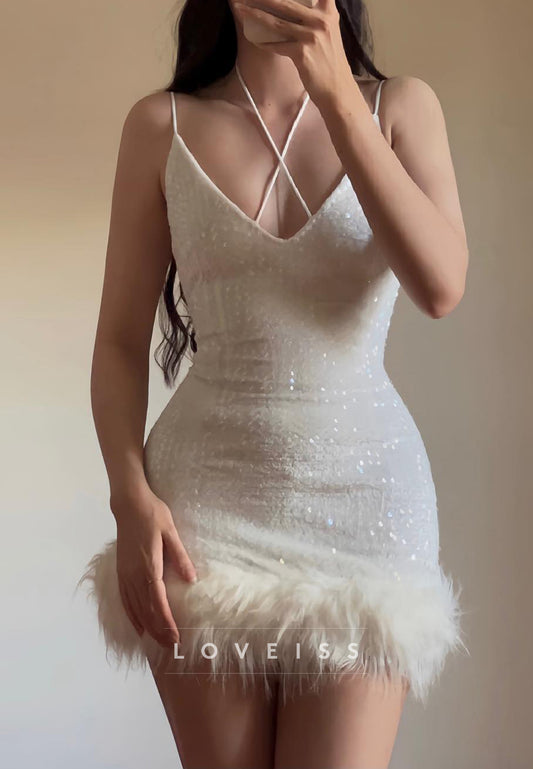 V-Neck Spaghetti Straps Sequins Sheath Homecoming Dress