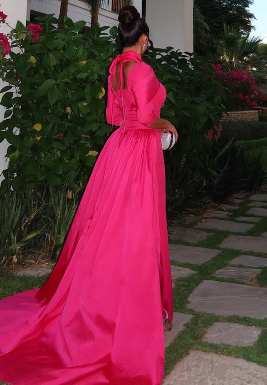 High Neck Half Sleeves Sleek Mermaid Evening Dresss