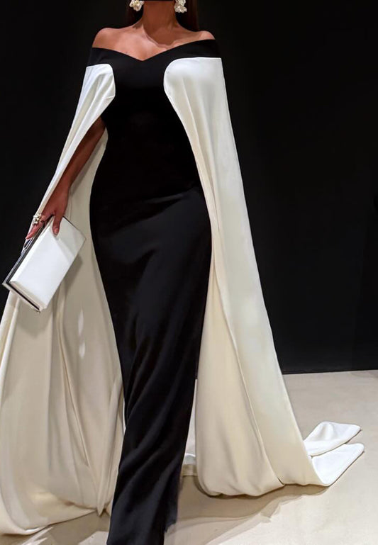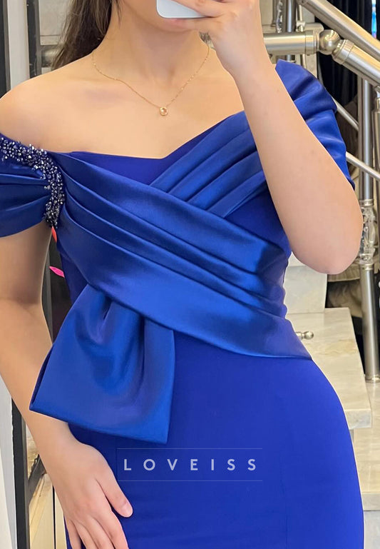 Off-Shoulder Cap Sleeves Pleated Sleek Mermaid Evening Dress Mother of Bride Dress