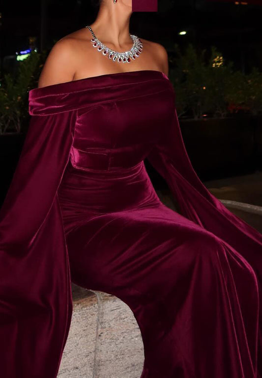 Off-Shoulder Long Sleeves Velvet Sleek Mermaid Formal Dress