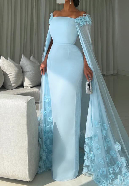 Off-Shoulder Sleeveless Floral Sleek Mermaid Formal Dress