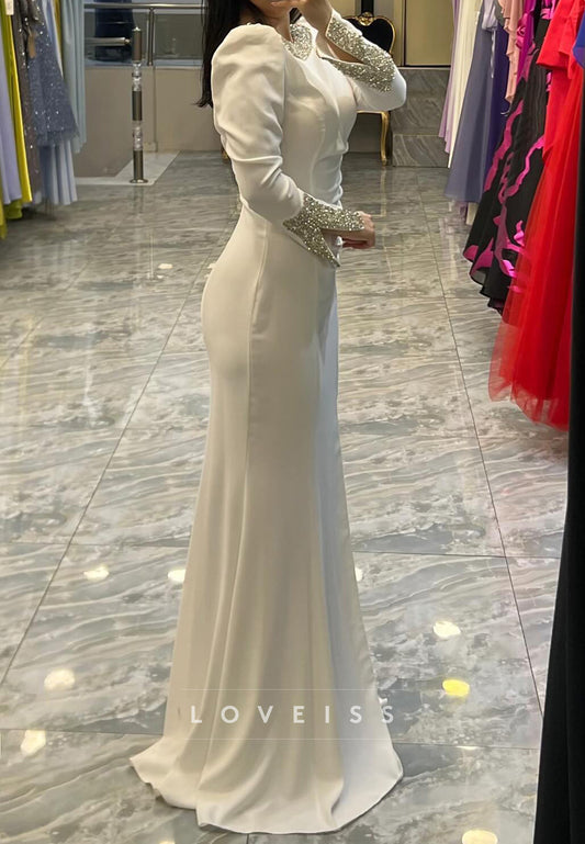 Square Long Sleeves Beaded Embroidery Mermaid Evening Dress
