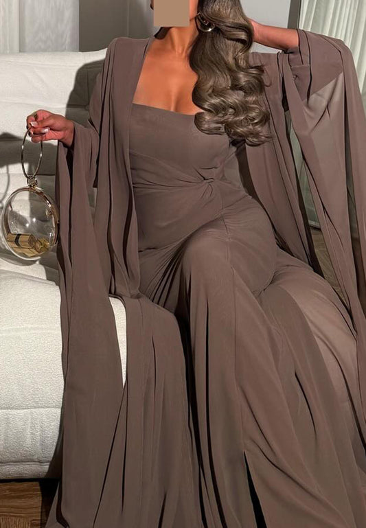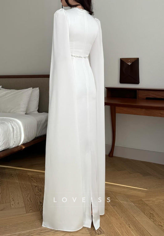 Square Long Sleeves Sleek Sheath Chiffon Evening Dress