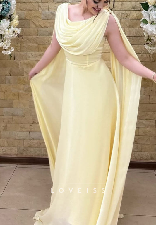 Off-Shoulder Sleeveless Pleated A-Line Evening Dress