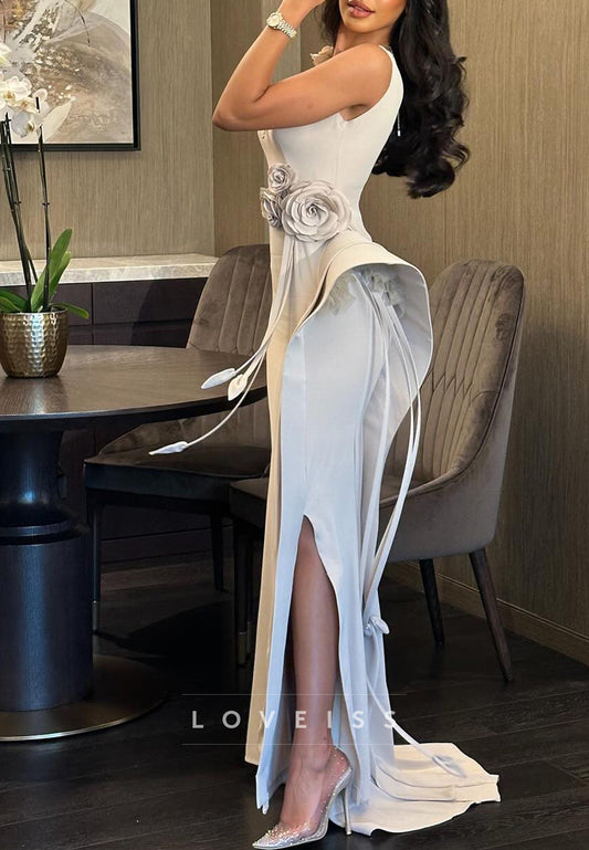 Scoop Sleeveless Sleek 3D Floral Sheath Evening Dress