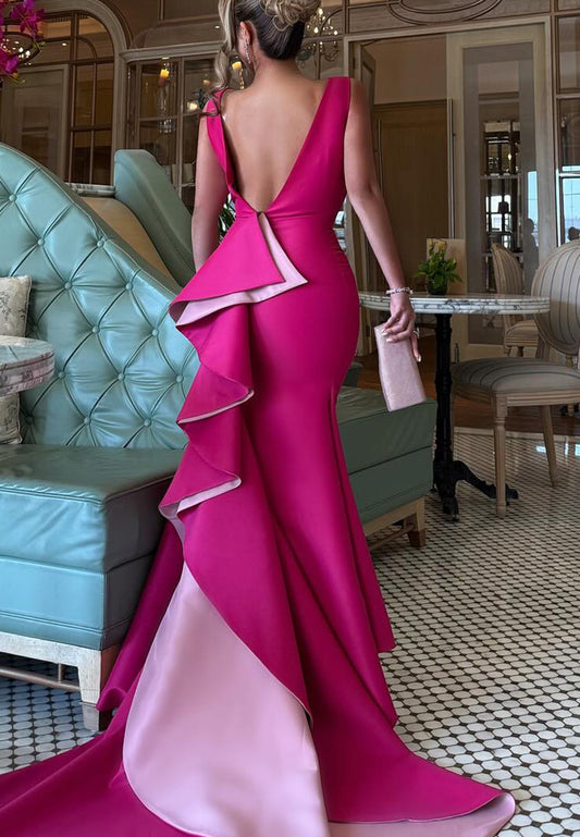 Deep V-Neck Sleeveless Sleek Mermaid Evening Dress