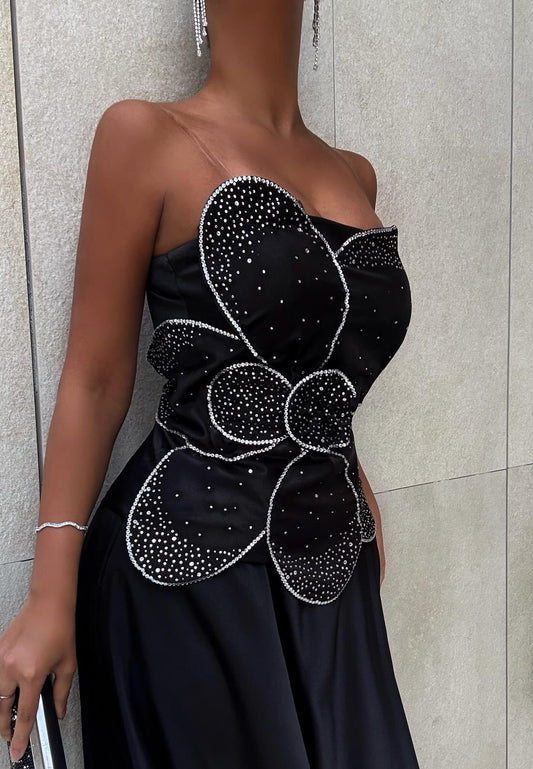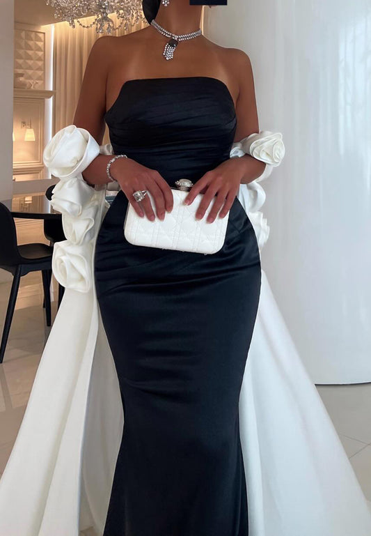 V-Neck Strapless Sleek Mermaid Fitted 3D Floral Evening Dress