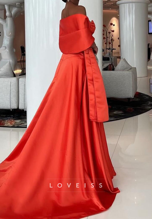 Off-Shoulder Sleeveless Pleated Side Slit A-Line Evening Dress