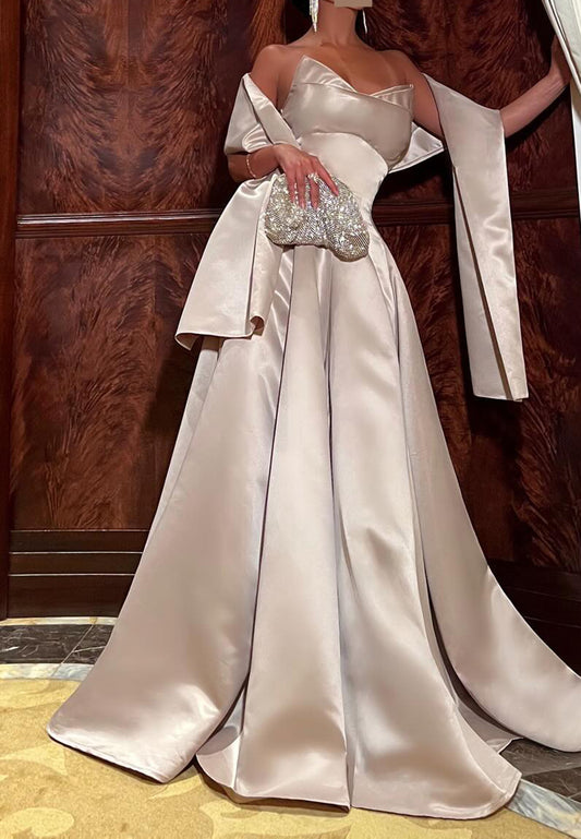 Off-Shoulder Beaded Strapless Pleated A-Line Prom Dress