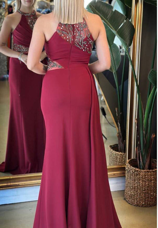Halter Sleeveless Beaded Pleated Mother of Bride Dress Mermaid Evening Dress