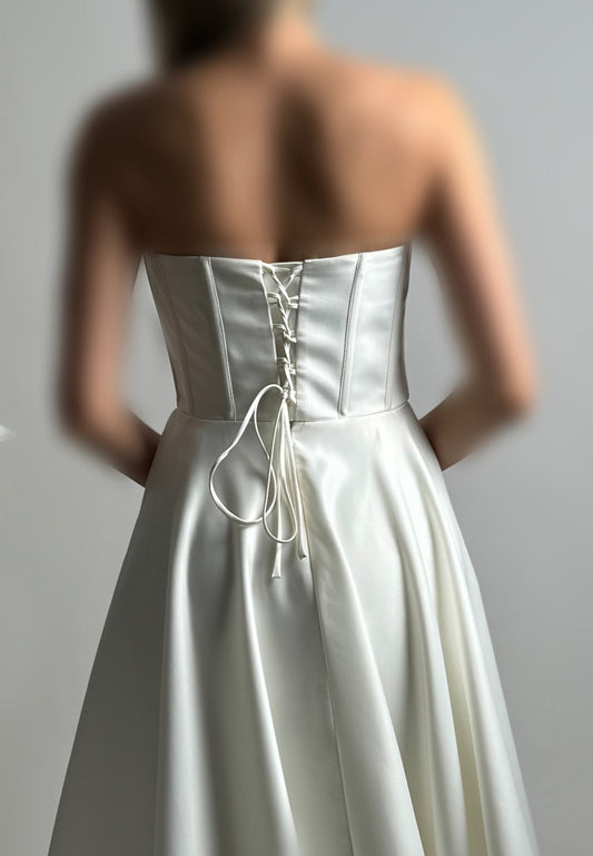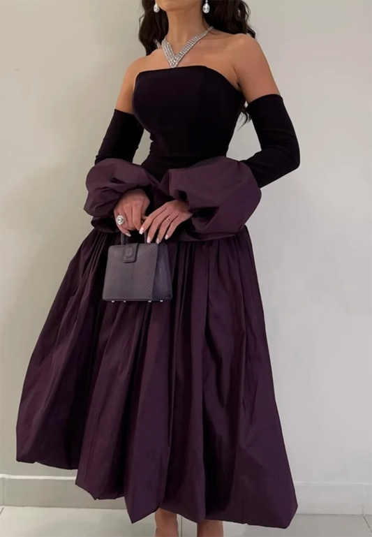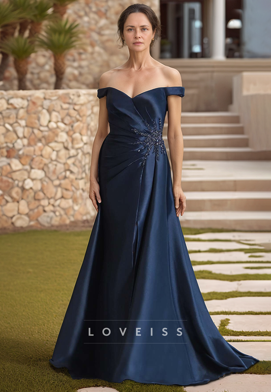Off-Shoulder Strapless Pleated Satin A-Line Evening Dress Mothert of Bride Dress
