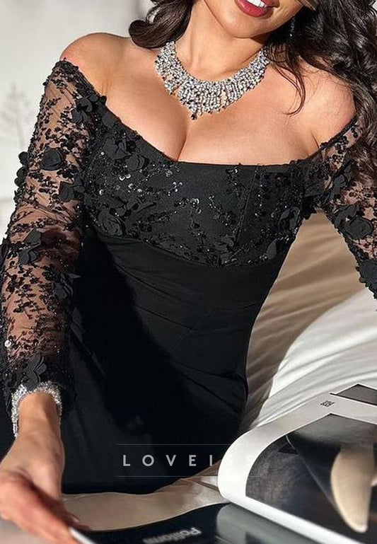 Off-Shoulder Long Sleeves Sleek Sheath Evening Dress