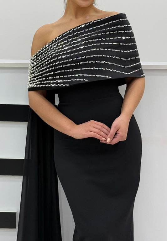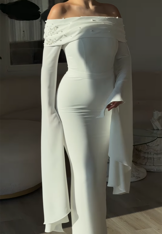Off-Shoulder Long Sleeves Pearl Sleek Mermaid Formal Dress