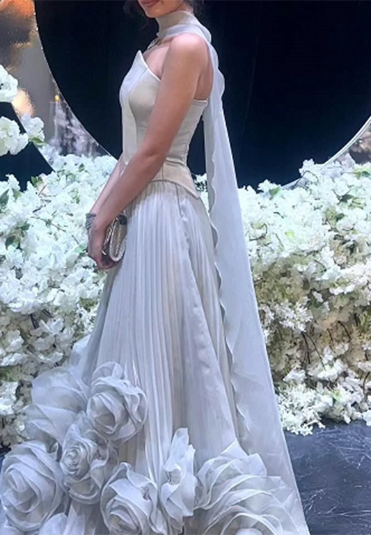 Off-Shoulder Sleevless 3D Floral Pleated A-Line Evening Dress