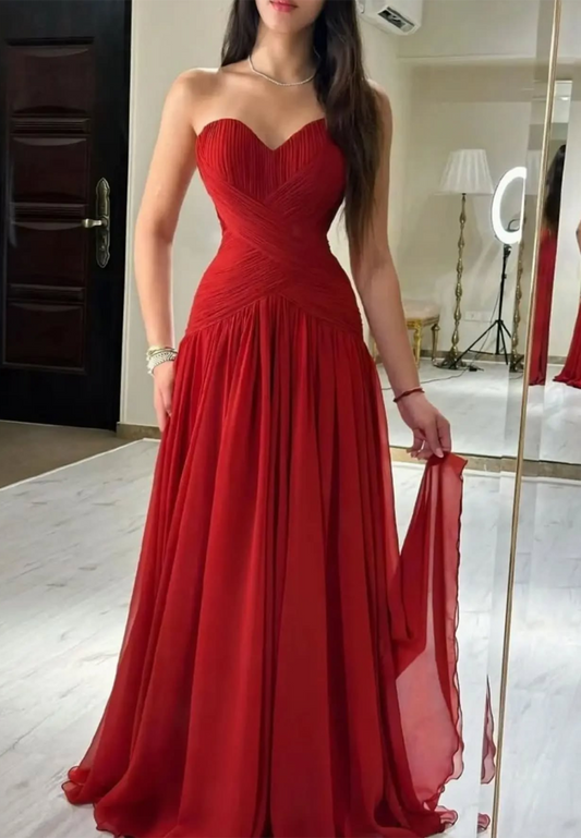 Off-Shoulder Sleeveless Evening Dress Pleated A-Line Prom Dress